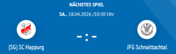 Am Samstag Vormittag, 18.04.26, um 10:30 Uhr, hat die C-Jugend der JSG Albachtal die JFG Schnaittachtal zu Gast und würde sich natürlich auf die Unterstützung zahlreicher Zuschauer freuen.