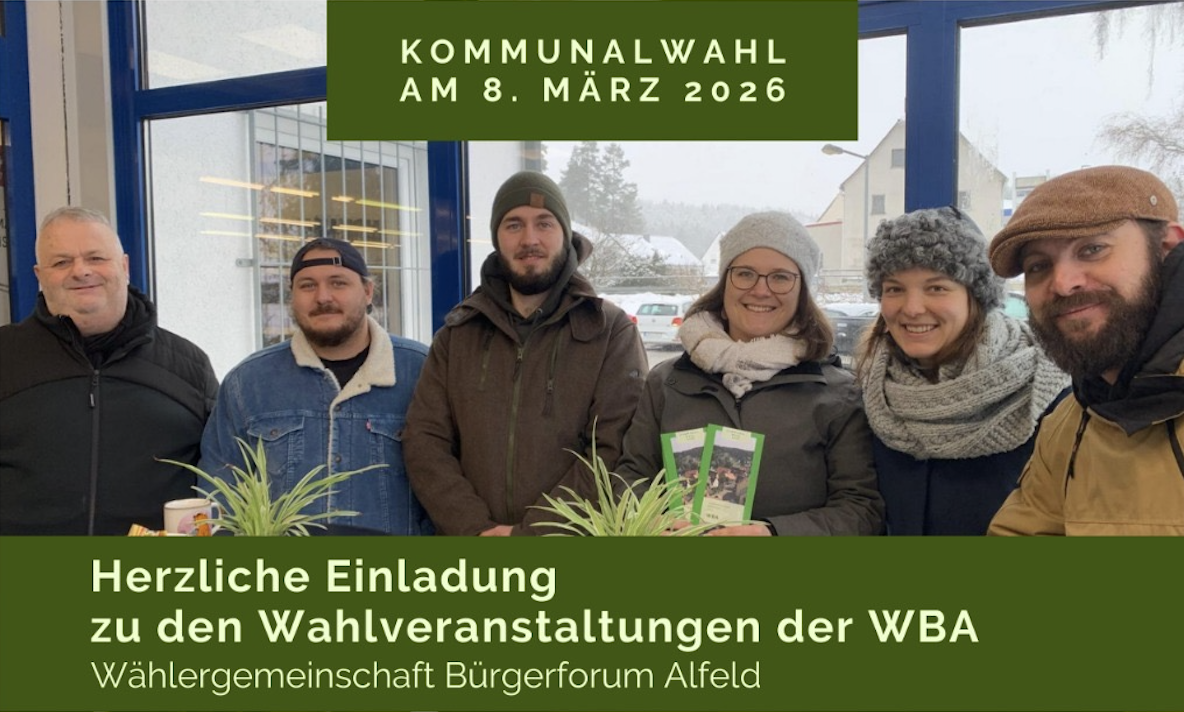 Wir laden euch zu unserer Wahlveranstaltung am 13. Februar ab 18 Uhr ins Volksmusikzentrum Alfeld (VMZ) ein Wir bewegen Alfeld: Unsere Motivation für den Gemeinderat zu kandidieren! Alfeld bewegt uns:…