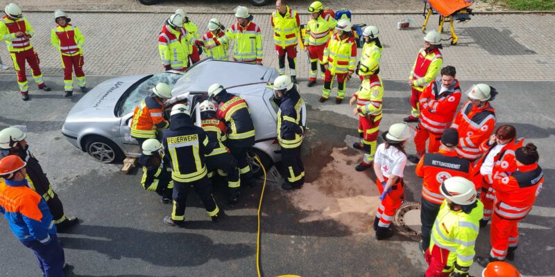 Aufgeteilt in drei Gruppen wurde am Vormittag an verschiedenen Stationen geübt. Am Nachmittag fanden dann zwei realitätsnahe Szenarien in der Technischen Hilfeleistung statt. Zuerst musste eine Person aus einen PKW gerettet werden, der auf ein festes Hindernis aufgefahren war. Im zweiten Fall wurde „Rettung aus PKW nach Seitenaufprall“ geübt. Durch die Feuerwehr wurden die Personen mit schwerem technischem Gerät befreit, durch den Rettungsdienst mussten die Personen während der Rettung versorgt und anschließend sachgerecht abtransportiert werden.